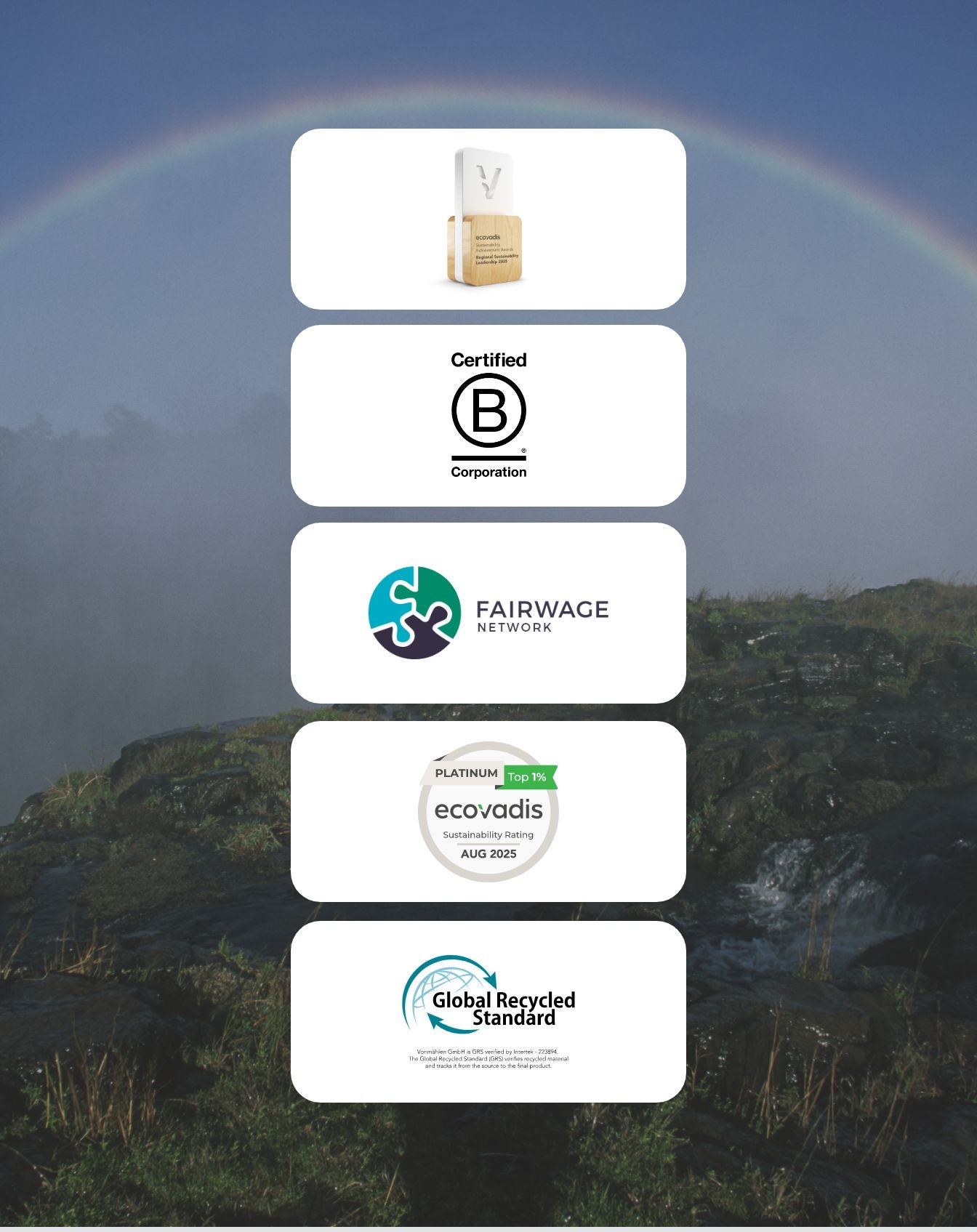 Vonmählen zählt zu den nachhaltigsten Apple Accessories Unternehmen weltweit. 2025 wurde Vonmählen mit dem EcoVadis Regional Sustainability Leadership Award ausgezeichnet – einer Auszeichnung, die weltweit nur 15 Mal vergeben wird und die wir als eine von nur fünf europäischen Firmen erhalten haben. Mit der Platin-Medaille im Ecovadis-Rating wurden wir 2025 wiederholt mit der Platin-Medaille ausgezeichnet und gehören damit zu den Top 1 % aller bewerteten Unternehmen. Seit August 2025 sind wir zudem mit 93,7 Punkten als B-Corp zertifiziert – ein weiterer Beleg für unsere umfassende Verantwortung in den Bereichen Umwelt, Soziales und Unternehmensführung.